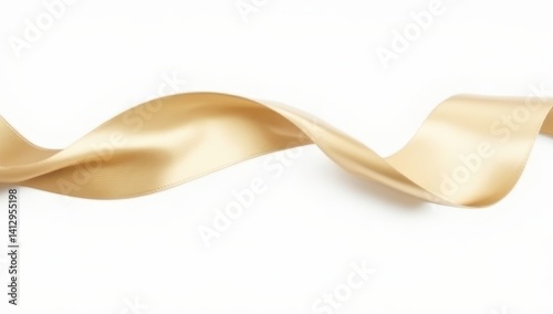 Elegant Gold Satin Ribbon Wave on White Background