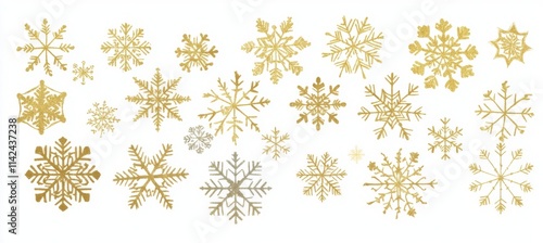 Elegant Gold Snowflakes on White Background in Rows and Columns for Festive Decorative Designs