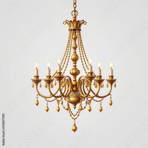 Elegant Golden Chandelier with Candle Lights and Decorative Beads