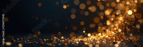 Elegant golden confetti cascades against a dark background, shine, new year, show