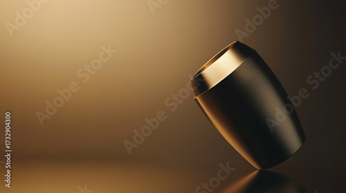 Elegant golden cylinder stands out on a blurred gradient background. Minimalist sophistication. The cylinder is simple, but stylish.