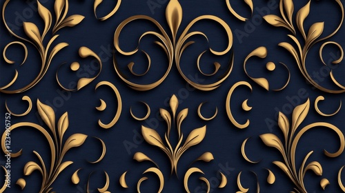 Elegant golden floral design on a deep blue background, perfect for luxury branding or decor