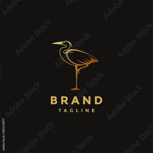 Elegant Golden Heron Bird Logo Design. Golden Stork Bird Silhouette Lines Logo Design.