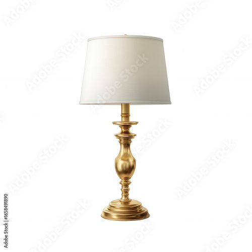 Elegant golden lamp with a white shade, perfect for enhancing home decor and creating a warm ambiance in any room.