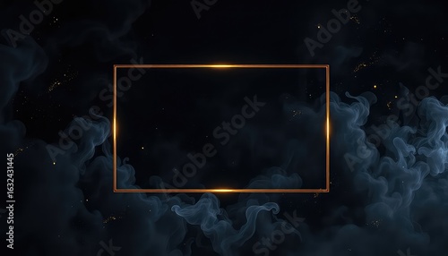Elegant golden rectangle with a smoke effect against a dark background with small bright specks