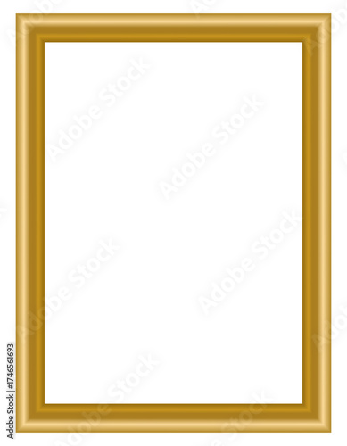 Elegant golden rectangular photo frame, luxury border design for portrait artwork or poster mockup, classic ornamental gold frame template