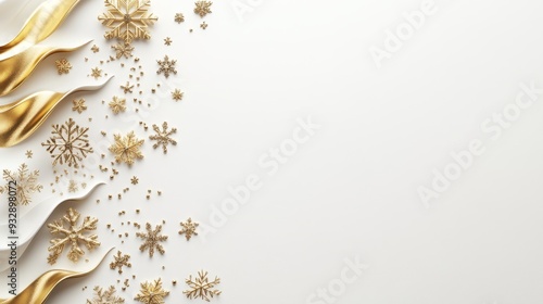 Elegant Golden Winter Wonderland Podium - 3D Render with Snowflakes on White Background for Seasonal Promotions
