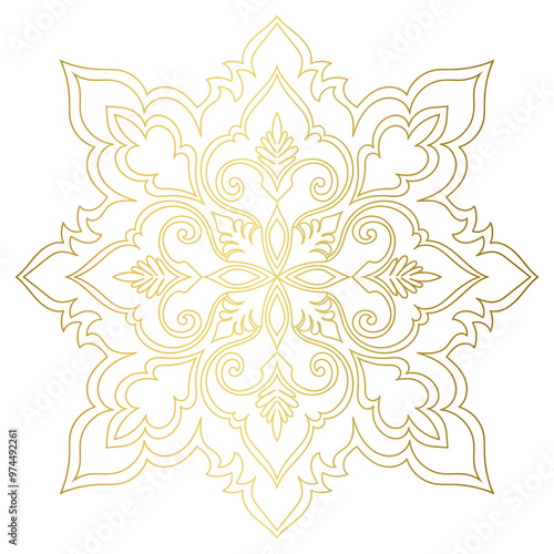 Elegant gradient golden mandala on a white background. Abstract graphic elements