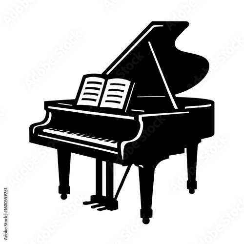 Elegant Grand Piano Silhouette Vector with Music Score - Classic Symbol