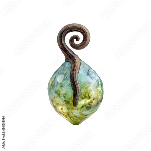 Elegant Green and Brown Gemstone Pendant with Swirling Wood Design