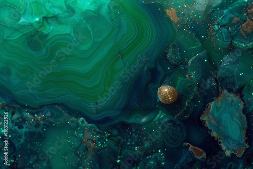 Elegant green and gold abstract marble texture with fluid ink patterns and dark background design