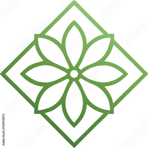 Elegant Green Flower Icon in Diamond Shape Nature Inspired Logo Design