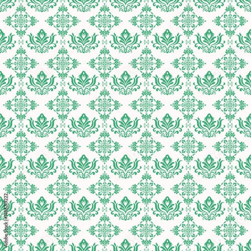 Elegant green pastel damask pattern with floral motif and vintage baroque decorative seamless pattern design