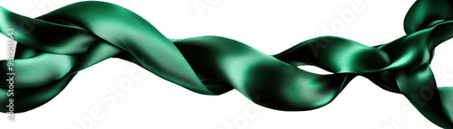 Elegant green satin ribbon twisted into a beautiful spiral, perfect for decorations, crafts, or fashion design projects.