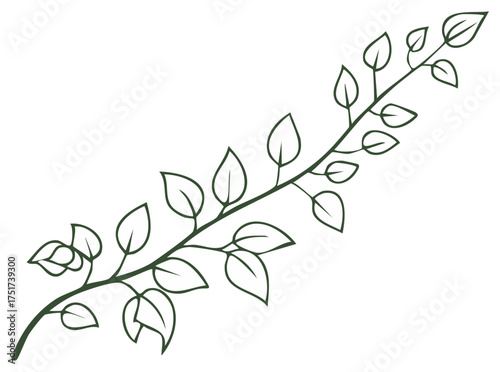 Elegant green vine with delicate leaves artistic botanical outline illustration