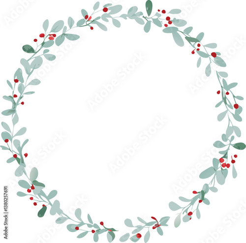 Elegant Greenery Wreath with Red Berries, Circular Frame Design