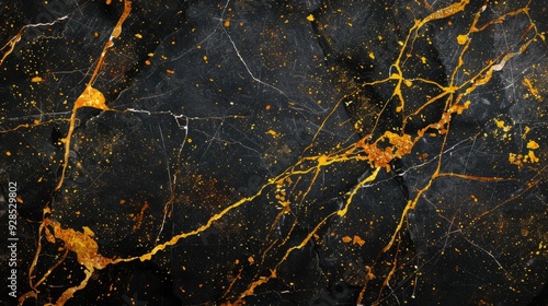 Elegant grunge texture background featuring black marble with distinctive yellow veins, ideal for luxurious and modern design projects, textured surface with bold veining patternss