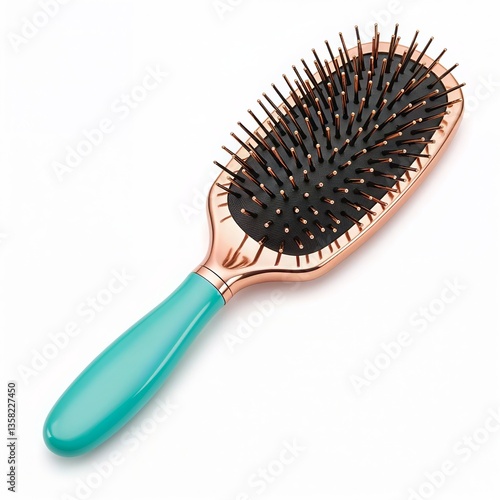 Elegant hairbrush with copper bristles and turquoise handle for hair care and styling
