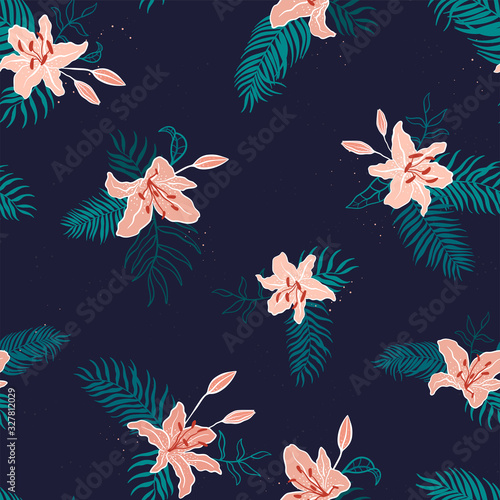 Elegant hand drawn tropical floral seamless pattern, exotic flower background, great for textiles, banners, wallpapers - vector design