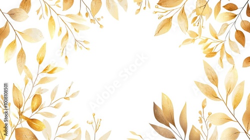 Elegant hand-drawn gold leaves and branches forming a circular frame around the invitation text, exuding sophistication and charm.