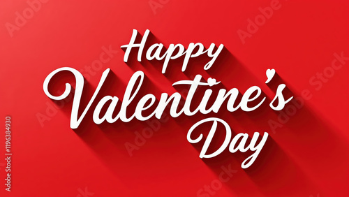 Elegant Happy Valentine's Day Typography with Red Background and White Lettering, Perfect for a Romantic Greeting Card