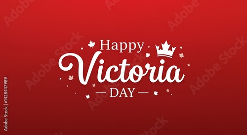 Elegant "Happy Victoria Day" Celebration Graphic with Canadian Maple Leaf Accents and a Crown, Displayed on a Festive Red Background, Evoking National Pride and Patriotism