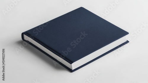 Elegant hardcover notebook mockup, rich navy blue textile cover, floating in white space, multiple angles perspective, realistic fabric texture, subtle shadow casting, photorealistic 3d rendering,