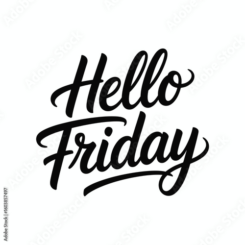 Elegant Hello Friday Calligraphy Design on White Background for Social Media