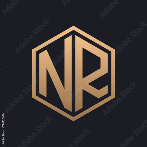 Elegant Hexagon Letter NR Logo Design. Initial Luxurious NR Logo Template