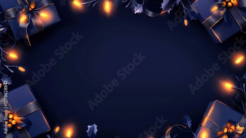 Elegant Holiday Frame with Gifts, Lights, and Natural Elements