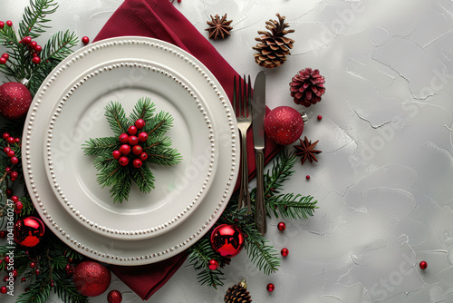 Elegant holiday table setting with festive red and green decorations and dinnerware