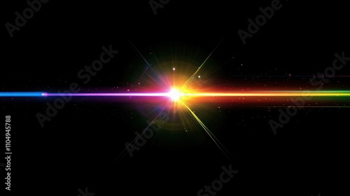 Elegant horizontal rainbow light flare glowing on black, a minimalist modern aesthetic with vibrant hues