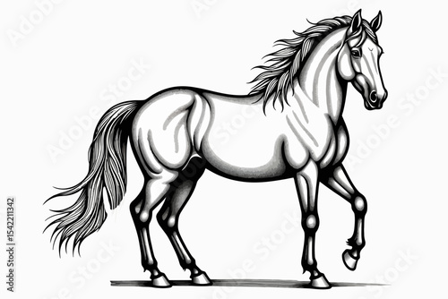 Elegant Horse Illustration- Black and White Horse Art- Detailed Equine Drawing- Horse Lovers Gift- Artistic Horse Image- Horse Wall Decor