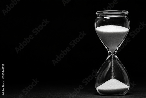 Elegant hourglass displaying sand flowing in a dark environment