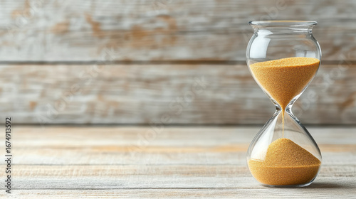 Elegant hourglass filled with golden sand, symbolizing passage of time and patience
