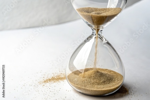 Elegant Hourglass With Flowing Sand on White Surface Generative AI