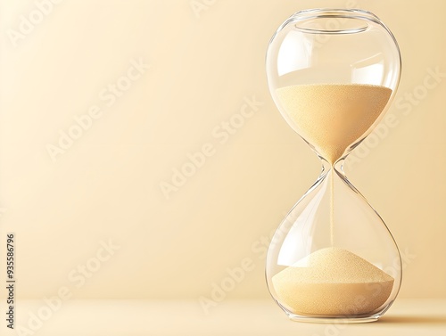 Elegant hourglass with golden sand slowly trickling from the top chamber to the bottom, representing the inevitability of time