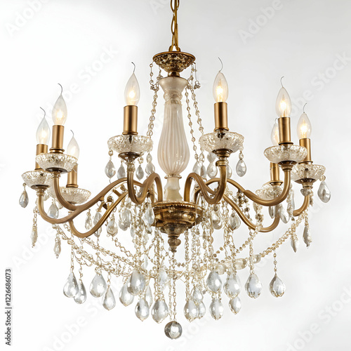 Elegant Illumination: Luxury Chandelier with Lights on White Background"