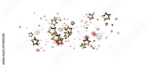 Elegant illustration of golden stars and delicate snowflakes. Perfect for holiday designs, Christmas cards, festive backgrounds, and seasonal de