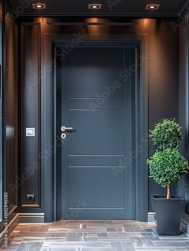 Elegant Interior Featuring a Modern Doorway and Decorative Plant Arrangement