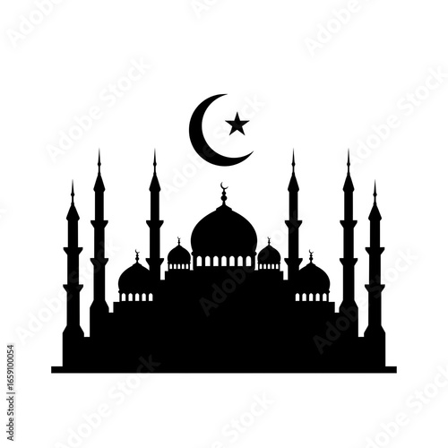 Elegant Islamic mosque silhouette with crescent moon and star symbol