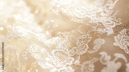 Elegant ivory lace fabric detail with intricate floral pattern and shimmer