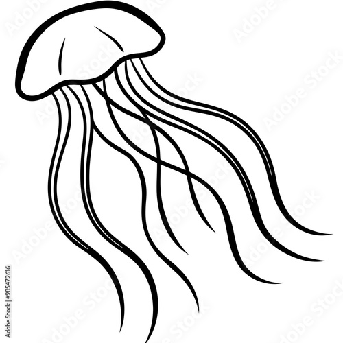 Elegant Jellyfish Icon with Flowing Tentacles - Vector Art