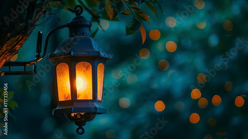 Elegant Lantern Casting Warm Light on Emerald Nights