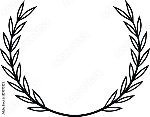 elegant laurel wreath icon line art vector illustration on transparent background