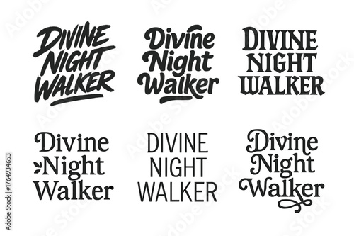 Elegant Lettering Grid. Divine Night Walker. Set lettering. harmonious lettering variations of the same emblematic concept (Dynamic brushstroke graffiti