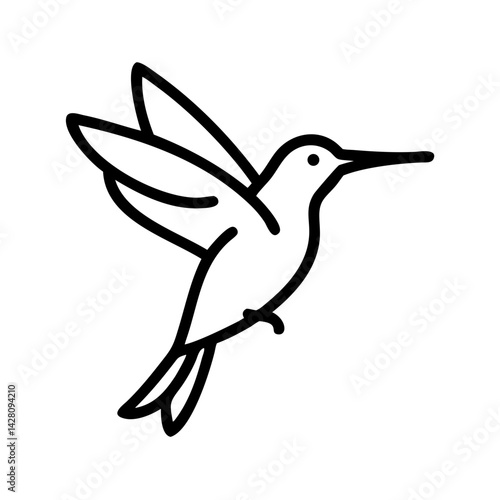 Elegant Line Art Illustration of a Hummingbird in Flight. A stylized, black outline vector graphic of a hummingbird in mid-flight.