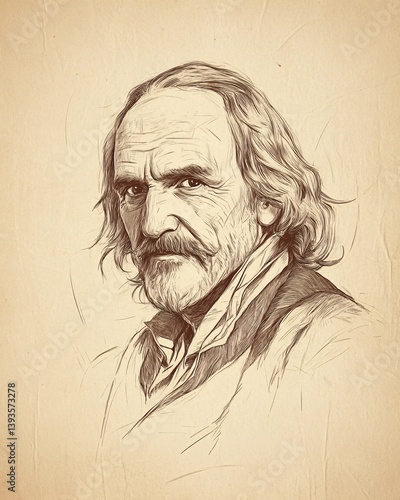 Elegant Linedraw of Thomas Hobbes on a Beige Background with Copy Space