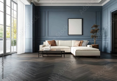 Elegant Living Room with Soft Pastel Wall Paint and Geometric Decor