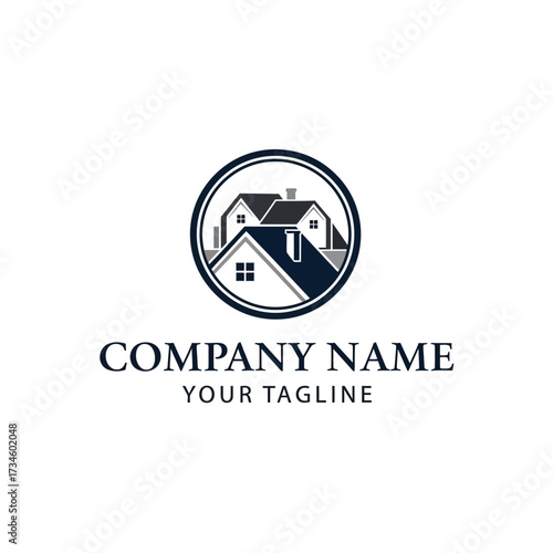 Elegant logo design featuring a circular frame with stylized house illustrations, perfect for real estate.